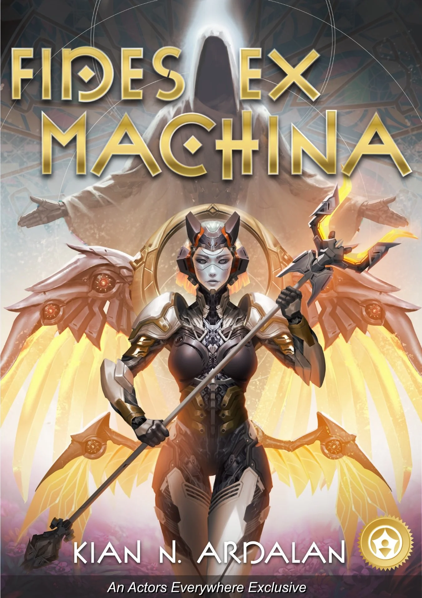 The book deals a lot with the idea of religion being a part of state. In this fictional future, the A.I. known as G.O.D. births angels from his factories to ensure order according to the system. The cover shows one such angel standing with an uncanny visage. Even on this front cover, it stands as a threat and a promise.