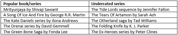 …I’ll cheat a bit. Here’s my list with 5 popular and 5 underrated series (the authors are my favorites):